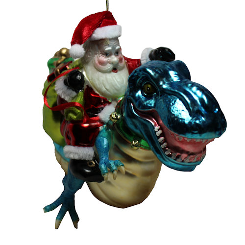 This beautiful, shiny T-rex ornament is simply gorgeous, a bit on the large size AND it's just stable enough to stand independently so, if you have somewhere safe, you don't necessarily have to hang it on the tree!