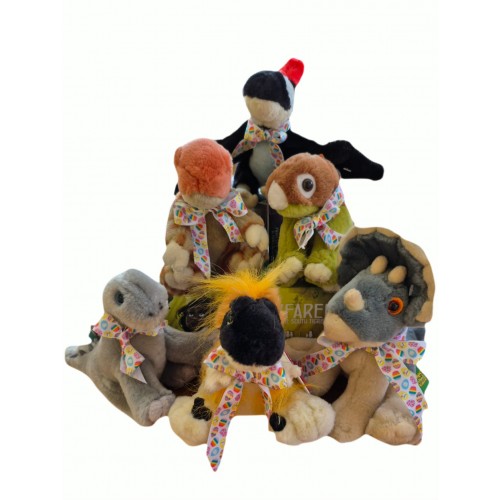 Whichever dinosaur you choose will be packaged beautifully in a cellophane bag with nesting and Cadburys Cream Egg and decorated with a cute bow.