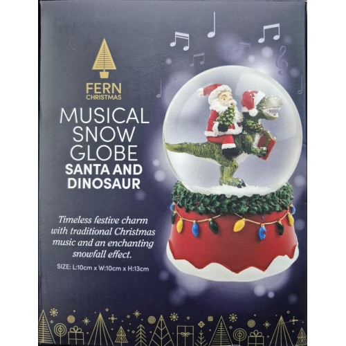 A MUSICAL SNOWGLOBE WITH SANTA ON A T-REX .... I've got one have you?